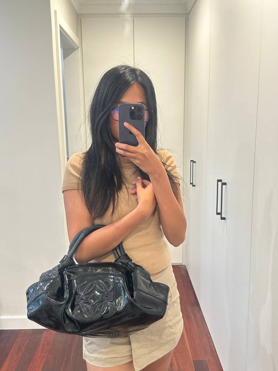 Authentic Vintage Loewe Nappa Aire Anagram Patent Leather Shoulder Bag